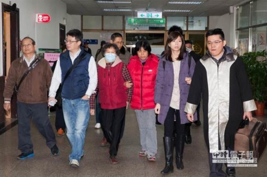 洪仲丘案台湾“高院”9日宣判,被告连长徐信正被判3年,上校副旅长何江忠3年,上士范佐宪2年8个月,旅长沈威志无罪,洪家属姐姐洪慈庸(右二起)、妈妈、爸爸、外婆、舅舅等人,一同到庭聆判。