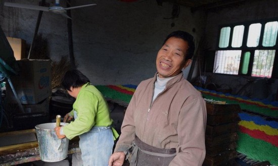 图为木斗里的粉笔经过二十分钟左右的放置后,就可以端到外面摊放在竹制的架子上晾晒。任之 摄