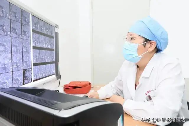 其实,李红燕和神经内科的“缘分”要更早一些。“神经内科,是一个跟全身零部件都相关的科室,对于还是学生的我们,挺玄幻的。”在李红燕的大学生涯中,神内授课老师每每课堂提问都会对她格外“偏爱”,也由此让她对课后温习和课前预习格外认真,“咋办,为了不丢人嘛。” 正因如此,真正工作后,李红燕对于科室及疾病有了更深的认知。李红燕仔细查看患者脑CT “神内疾病的诊断和其他科室不同,比如呼吸疾病,用听诊器就能有所判断,如果血管堵了、体内长东西了,用CT、B超等检验设备一检查,也能差不多有数了。”李红燕说,神经系统不仅涵盖着脑、脊髓等中枢神经,还包括连接躯体、内脏、肌肉的周围神经,任何神内疾病都有着牵一发而动全身的特点,“我们看病,要像福尔摩斯一样,针对疾病症状、查体结果,抽丝剥茧般推理病灶的所在位置,再进行相应检查,直至确诊后再给予对症的治疗。”谈到专业,李红燕眼睛亮了,你看,大脑皮层负责思维、沟通;眼睛为什么能动,那是脑干的中脑决定的;嘴巴,吃东西、说话,离不开桥脑;而大脑延髓则决定你是否能够呼吸……“人体真的很神奇,也很复杂,”李红燕以头疼为例,原因很复杂,可能是因为感染,可能是存在占位,或者就是神经性的偏头疼,“从这个角度来看,还有很多疾病等待着我们去探索。”